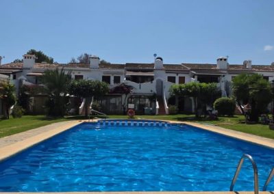 Exteriores y Servicios: Lo que hace especial a este adosado es su entorno. Podrás disfrutar de desayunos al aire libre en tu terraza privada o sumergirte en la gran piscina comunitaria rodeada de cuidados jardines tropicales que dan nombre a la urbanización.