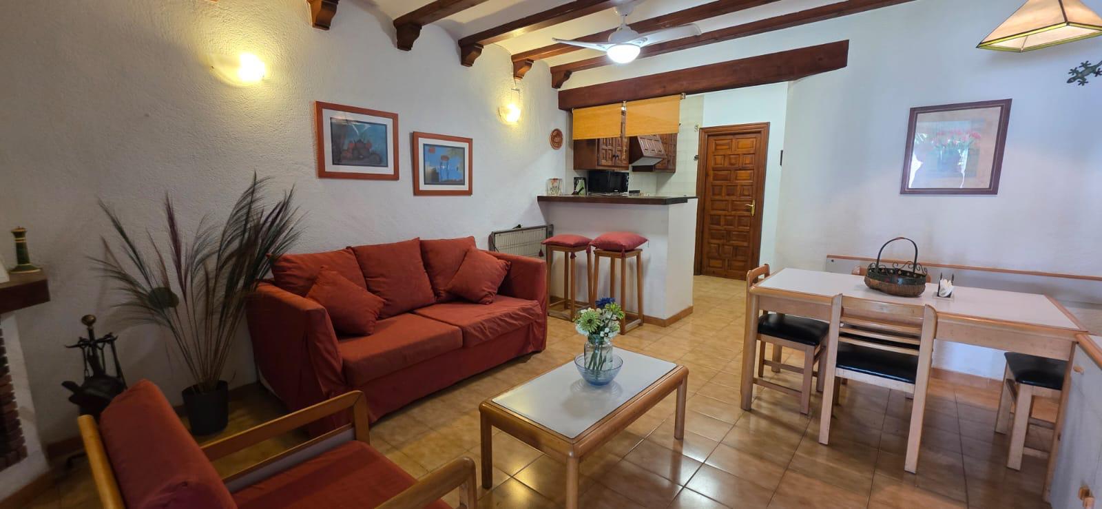 Interiores con Encanto: La vivienda cuenta con un dormitorio luminosos, diseñados pensando en tu descanso absoluto. El salón-comedor, de concepto abierto y acogedor, se convierte en el corazón del hogar, ideal para compartir momentos tras un día de sol. La cocina está totalmente equipada para que no te falte nada durante tu estancia.
