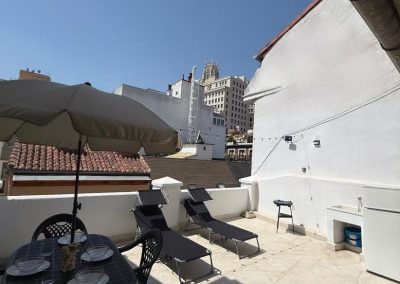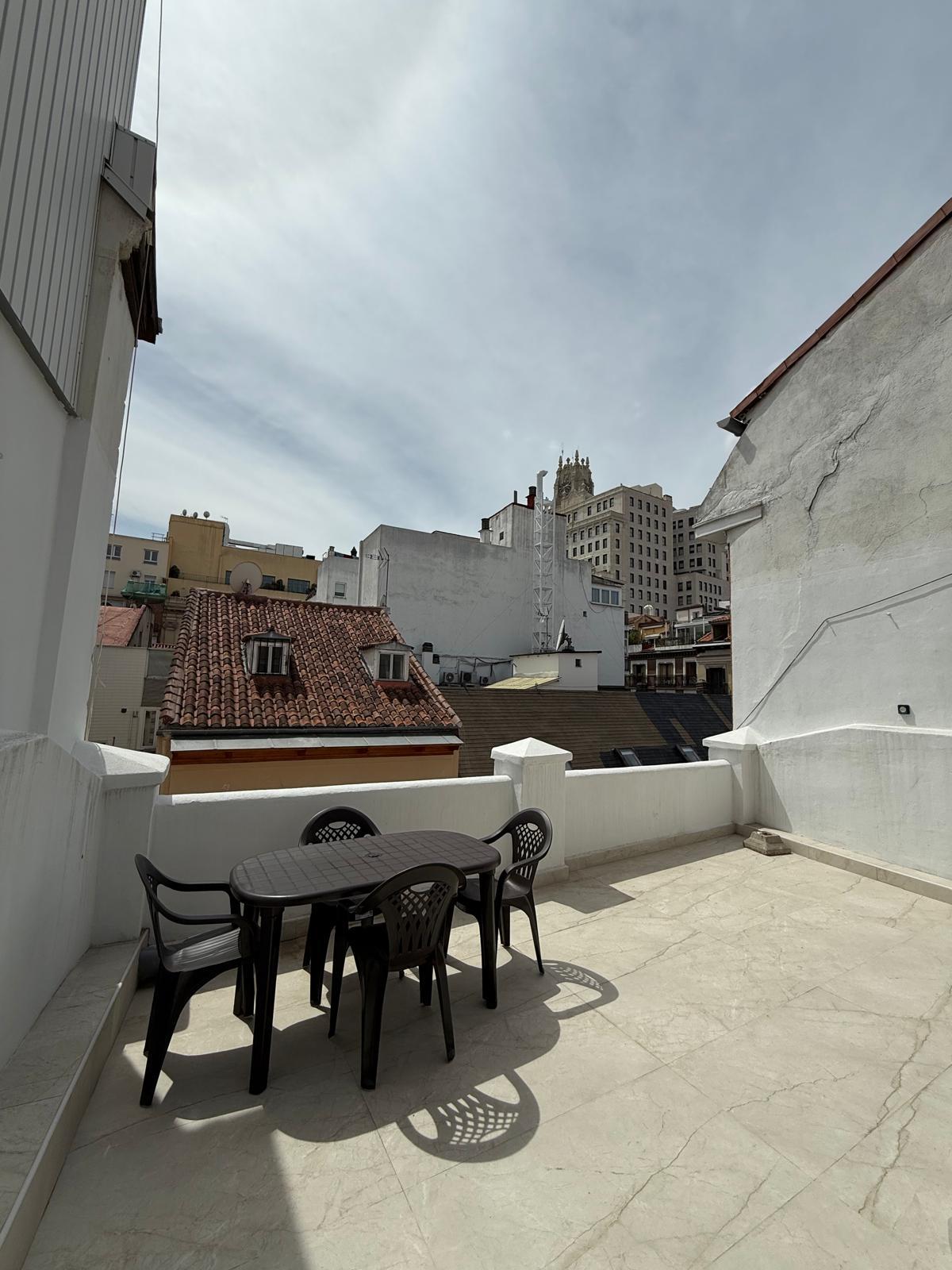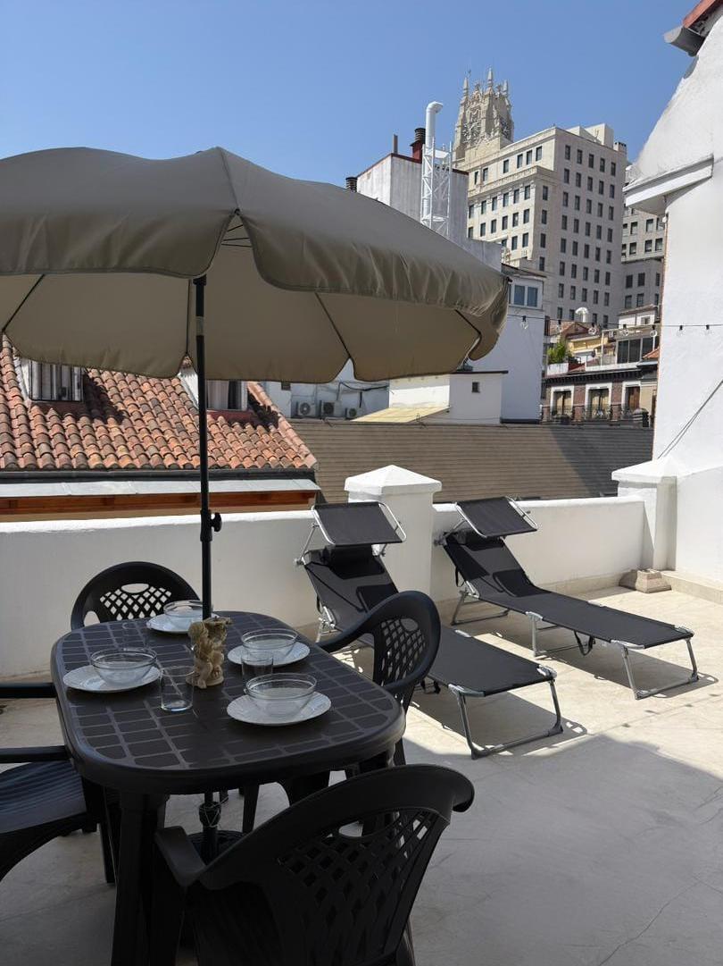 El Tesoro del Centro: Tu Terraza Privada: Lo que realmente hace destacar a esta propiedad es su terraza privada. En el corazón de Chueca, disponer de un espacio exterior propio es un lujo absoluto. Es el lugar perfecto para desayunar al aire libre o relajarse tras un día de turismo por la Gran Vía, disfrutando de la luz de Madrid desde las alturas.